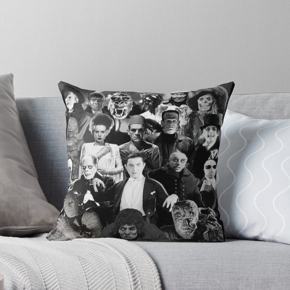 Classic Horror Monsters Throw Pillow